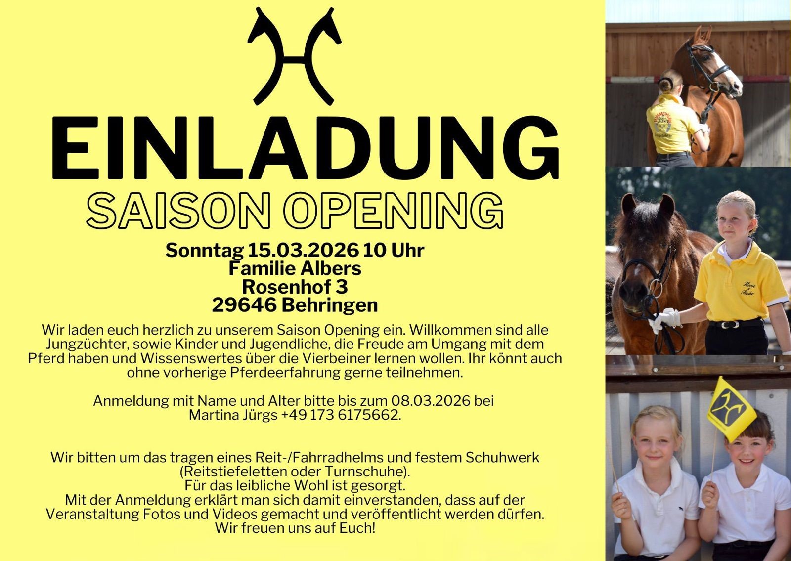 Familie Albers lädt am 15.03.2026 alle Jungzüchter zum Saison Opening ein. Hier geht es zur Einladung -->